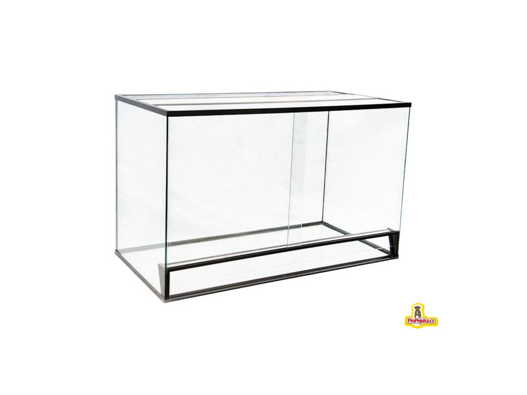 Celoskleněné terárium o rozměrech 50 x 35 x 35 cm.