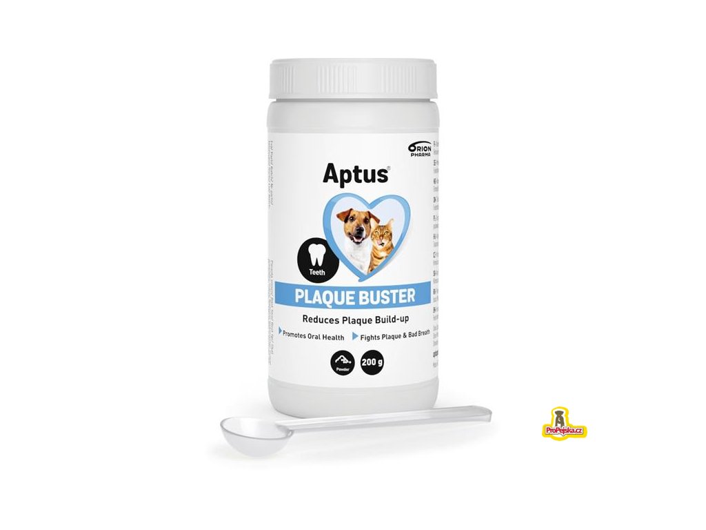 Plaque Buster od společnosti Aptus je 100% přírodní prášek z mořských řas (Ascophyllum nodosum), který omezuje tvorbu zubního plaku a zubního kamene a eliminuje nepříjemný zápach z ústní dutiny.