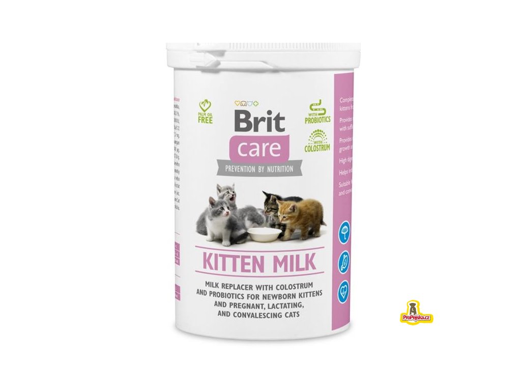 Kompletní plnohodnotné krmivo pro novorozená koťata, od narození do přechodu na granule či jinou stravu pro koťata. Mléko je vhodné pro novorozená koťata, březí a kojící kočky a pro kočky v rekonvalescenci. Mateřský instinkt a péče jsou základem pro odchov zdravých a prosperujících koťat. Pokud však dojde k osiření nebo kočka (matka) nedokáže produkovat dostatečné množství či kvalitu mateřského mléka, je nutná náhrada ve formě kvalitního mléka pro koťata. Brit Care Kitten Milk je svým složením velmi podobný mateřskému mléku. Přidané kolostrum má vliv na zvýšení imunity koťat a obsažená probiotika, pomáhají udržovat správnou rovnováhu střevní mikroflóry. Mléko obsahuje pro koťata nepostradatelný taurin, který je nutný pro správný vývoj srdce a oční sítnice.