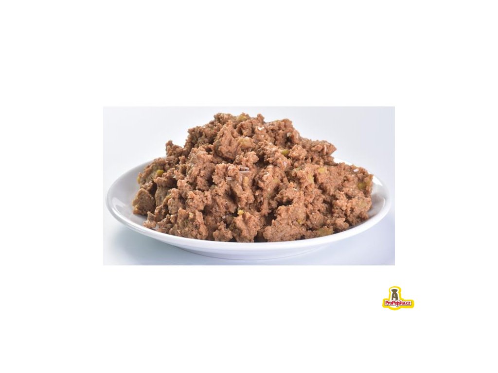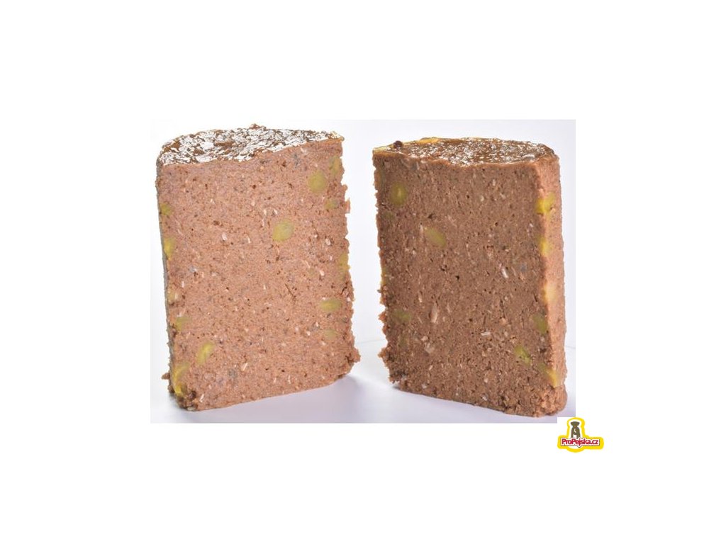 hrubý protein 7,0 %, hrubý tuk 7,5 %, hrubý popel 2,0 %, vlhkost 78,0 %, hrubá vláknina 1,0 %, vápník 0,1 %, fosfor 0,1 %, sodík 0,2 %, hořčík 0,02 %, draslík 0,3 %, arginin 0,15 %, taurin 0,1 %, omega 3 0,3 %, omega 6 0,2 %.