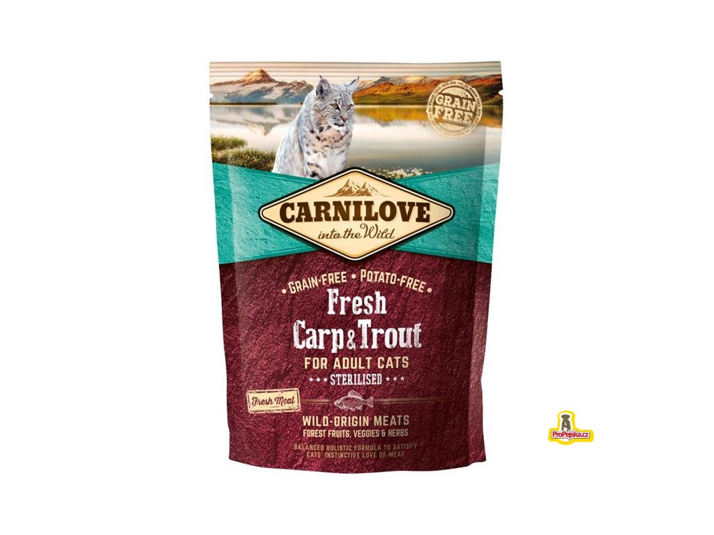 Carnilove Kapr & Pstruh je superprémiové, holistické kvalitní krmivo bez obilovin a brambor s čerstvým masem pro dospělé kastrované kočky. Krmivo bylo navrženo s respektem k přirozené skladbě potravy koček a poskytuje vaší kočičí společnici vyváženou stravu bohatou na čerstvé maso v kombinaci s různými druhy zeleniny, lesního ovoce a bylin.