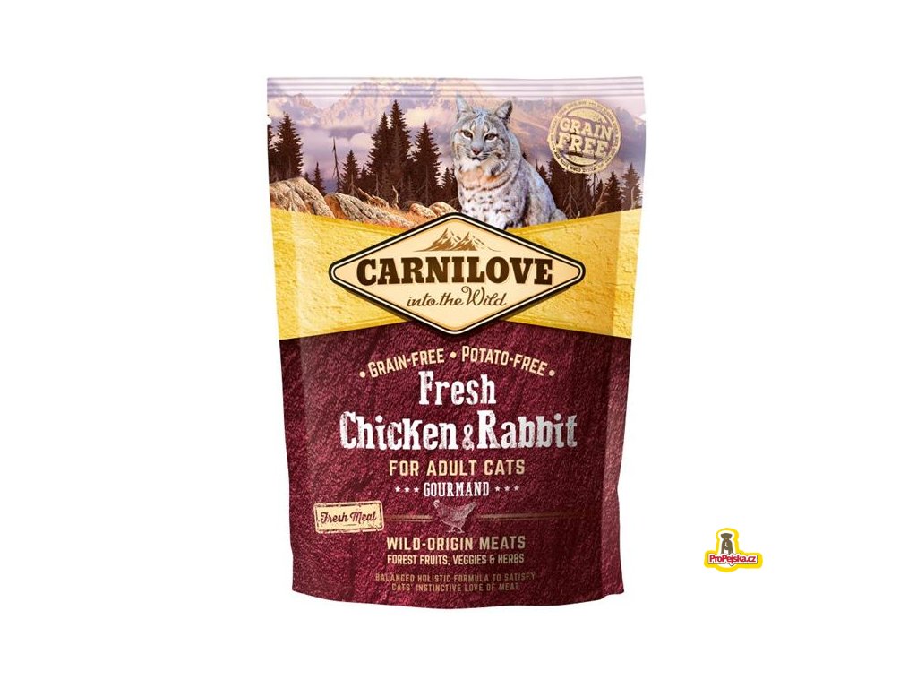 Carnilove Fresh Kuře & Králík je superprémiové, holistické kvalitní krmivo bez obilovin a brambor s čerstvým masem pro dospělé kočky. Krmivo bylo navrženo s respektem k přirozené skladbě potravy koček a poskytuje vaší kočičí společnici vyváženou stravu bohatou na čerstvé maso v kombinaci s různými druhy zeleniny, lesního ovoce a bylin.