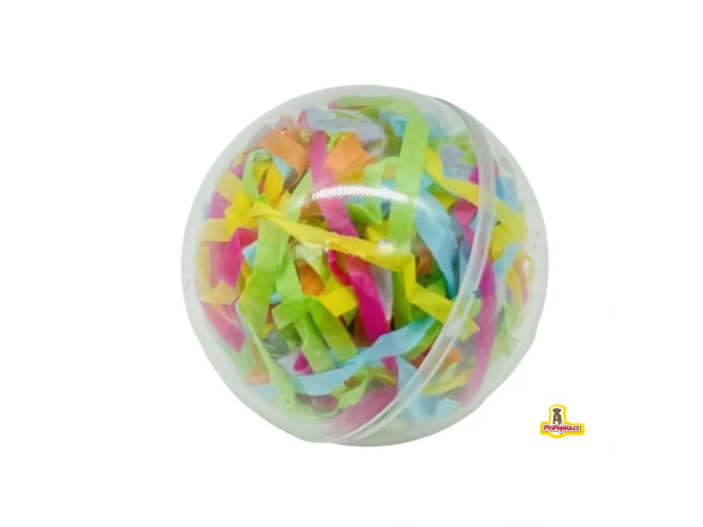 Uvnitř míčku jsou barevné konfety, které zaujmou vaši kočku.