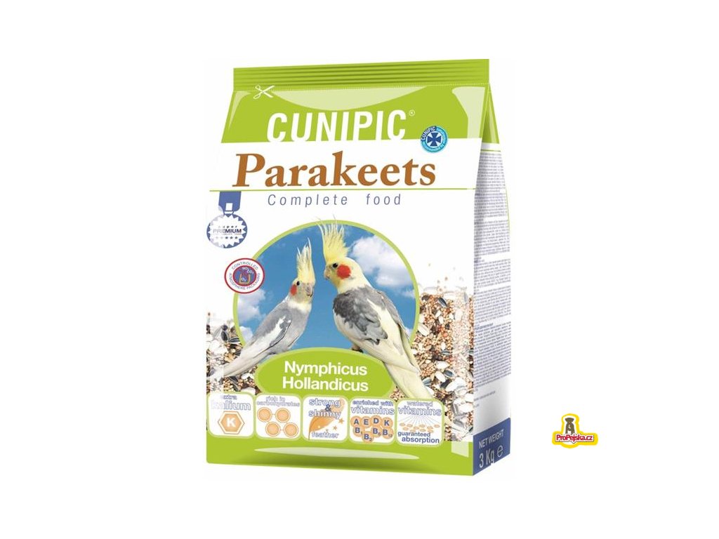 Cunipic korela 3 kg je kompletní krmivo bohaté na vitamíny a železo, speciálně vyvinuté pro nejvyšší kvalitu krmiva pro korely a papoušky střední velikosti. Obsahuje 14 druhů semínek. Krmivo je bohaté na vitamíny A, B1, B2, B6, B12, D, E, K a na uhlohydráty; je obohacené draslíkem a podporuje zdravé a lesklé peří. Vitamíny jsou do krmiva přidávány formou nástřiku na jednotlivých zrníčkách, čímž máte jistotu, že pták vitamíny přijme.