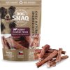 Kvalitní sušené doplňkové krmivo pro všechna plemena psů s normální aktivitou. Jde o 100 % přírodní produkt bez přidaných konzervantů, barviv a cukrů. Žvýkání hovězího penisu posiluje žvýkací svaly psa, čistí zubní plak, masíruje dásně a působí preventivně proti vzniku zubního kamene, vyrovnává hladinu žaludečních šťáv a podporuje peristaltiku střev. Díky specifickému aromatu je pro psy velkým lákadlem. Obsahuje minimum tuku, a je tudíž vhodný i pro psy se sklony k nadváze.