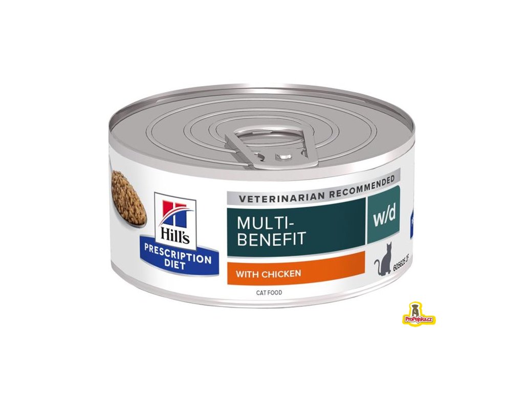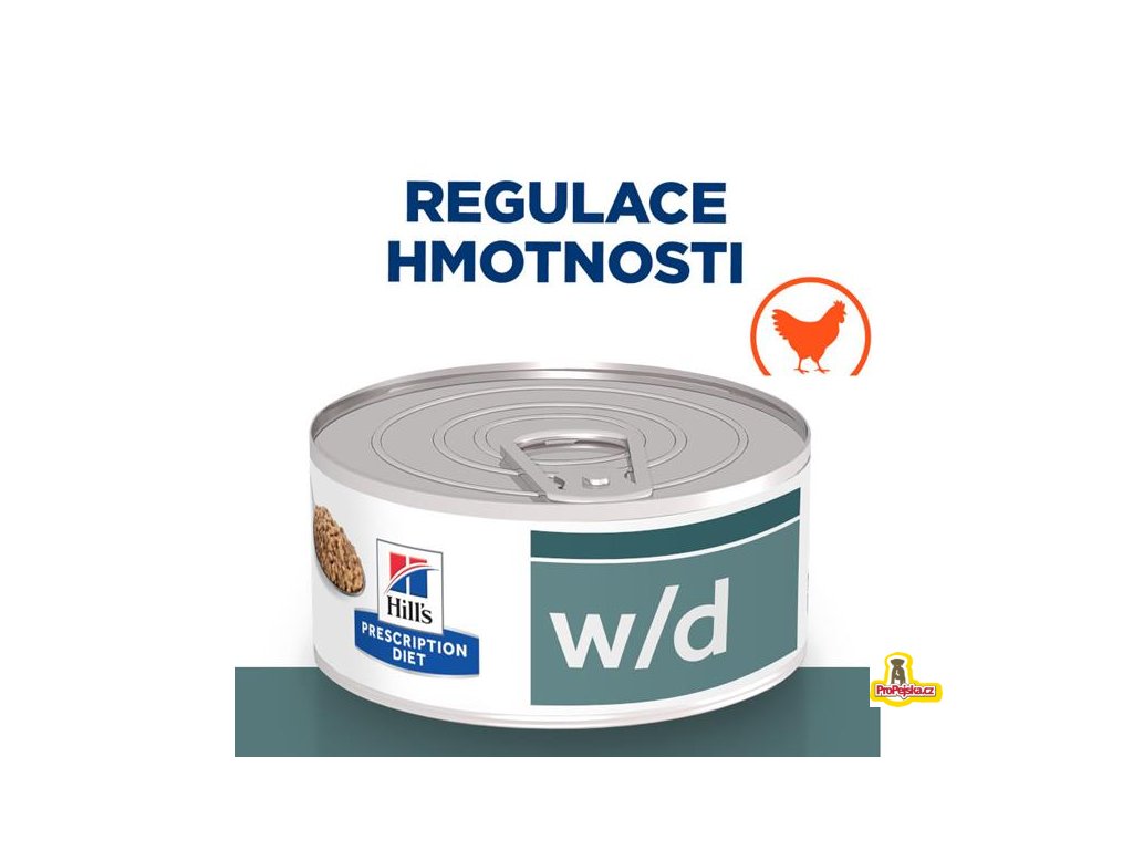 Hill's Prescription Diet w/d Krmivo pro kočky s kuřetem (5 %) je kompletní dietetické krmivo pro dospělé kočky pro regulaci zdrojů glukosy (Diabetes mellitus) a regulaci metabolismu lipidů v případě hyperlipidemie.