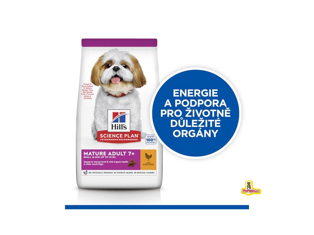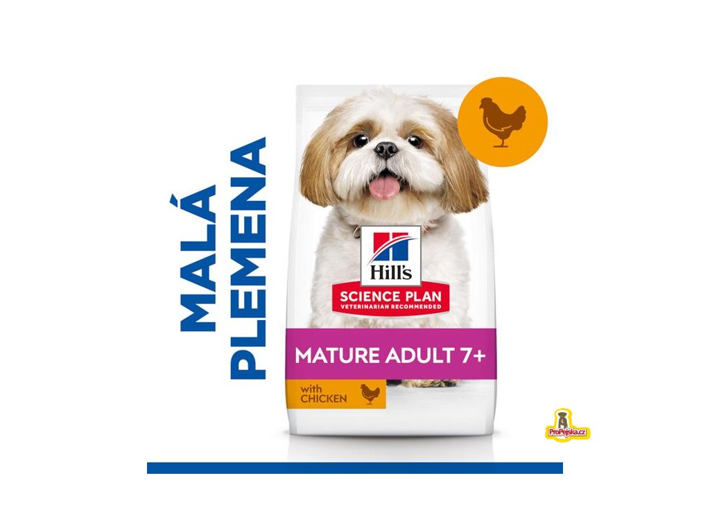 Hill's Science Plan krmivo pro malé a trpasličí starší psy (více jak 7 let) s kuřetem je výživa vytvořená speciálně pro důstojné stárnutí malých a trpasličích psů. Speciální velikost granulí pro malé tlamičky, obsahují synergickou směs živin pro energii a vitalitu.