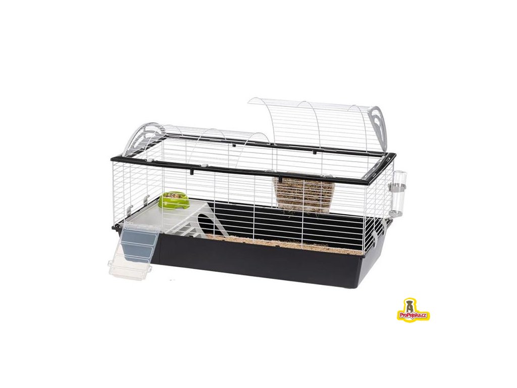Popis. Kvalitní klec s vybavením vhodná pro zakr. králíka a morčata vyrobená v Evropě z kvalitního, netoxického plastu. Zajímavý design klece s obloukovou střechou, díky které je klec prostornější a dává zvířatům větší možnost pohybu. Celá střecha je otvíratelná, což usnadňuje čištění klece a manipulaci se zvířetem. Z boku klece jsou zasunovací dvířka. Komfortní klec jak pro zvířata, tak pro chovatele.