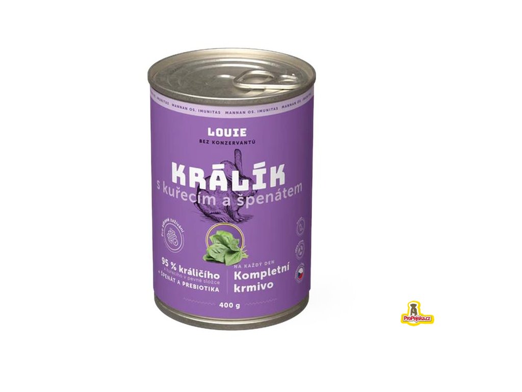 › Chovatelské potřeby › Louie konz.pro psy králík s kuřecím a špenátem 400 g