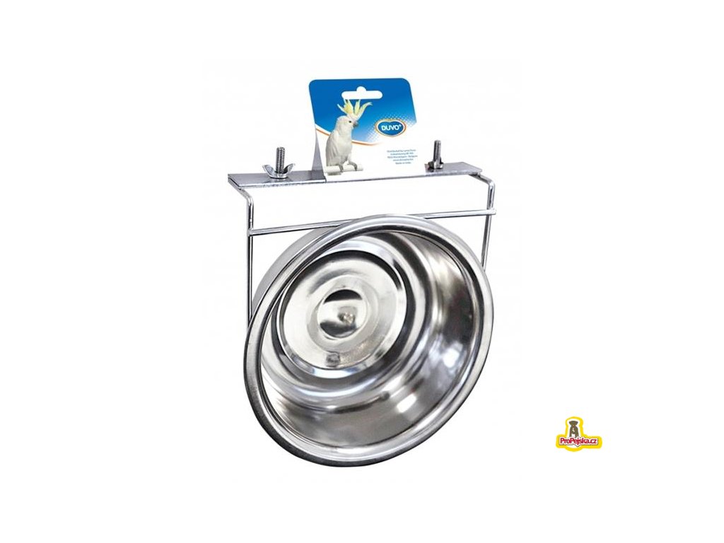 Nerezová miska se závěsem na dva šrouby je vhodná do klecí, voliér či transportních klecí.