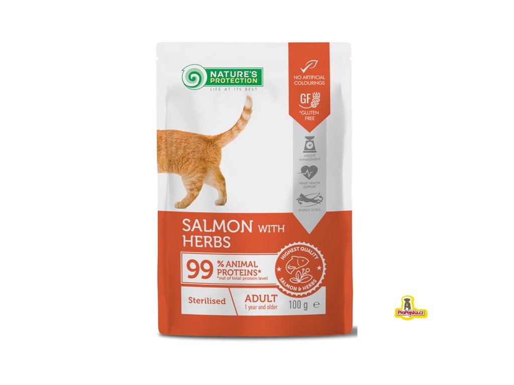 › Chovatelské potřeby › Nature's Protection Cat kaps. Sterilised Salmon and Herbs 100 g