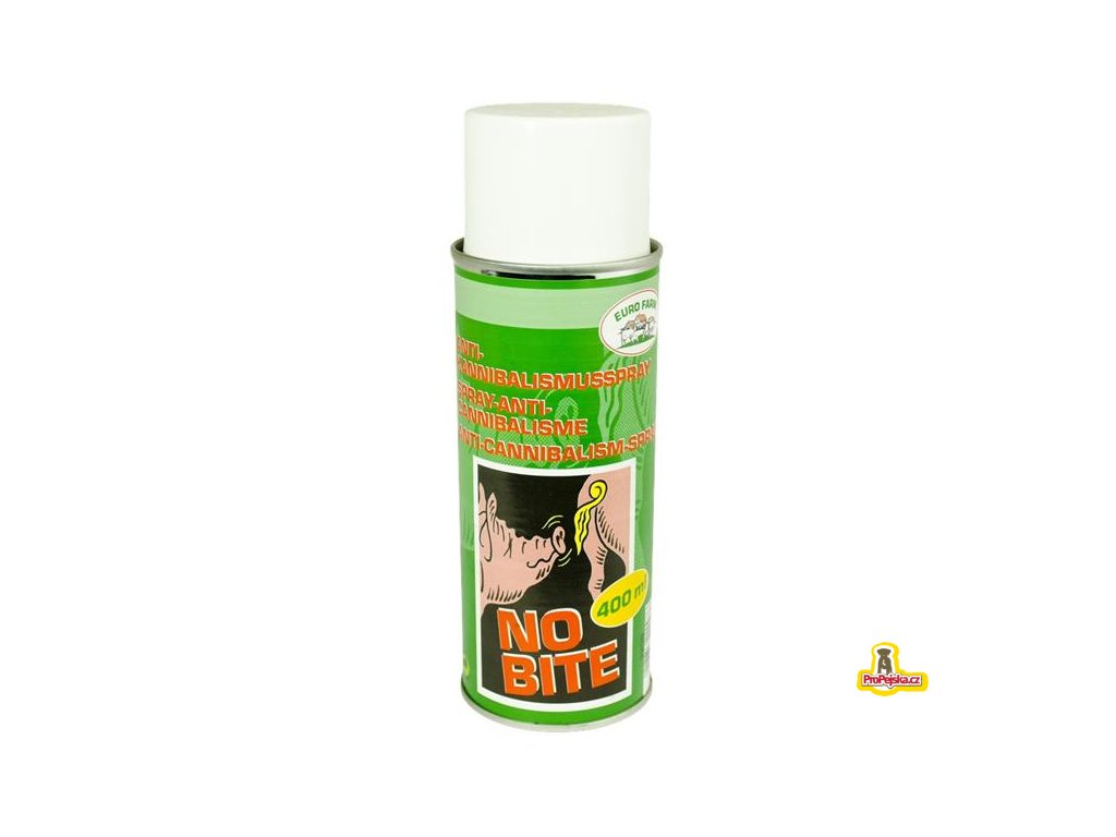 Sprej proti kanibalismu prasat a drůbeže NO BITE 400 ml. Sprej trvale mění pachový profil v okolí prasat nebo drůbeže a tím dokáže vytvořit uklidňující klima v kotcích nebo drůbežárně.