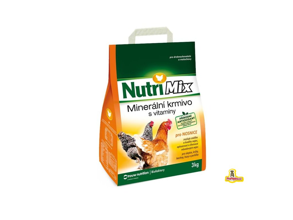Nutrimix pro NOSNICE je určen pro doplnění minerálních látek a vitaminů do krmných dávek pro slepice, kachny, husy, krůty nebo perličky chované v drobnochovech. Podporuje zvýšení snášky, oplozenost a líhnivost násadových vajec. Zajišťuje dobrý zdravotní stav drůbeže a zlepšuje využití přijatých krmiv. Přidává se do krmné dávky, která je založena na obilných šrotech nebo jiných neplnohodnotných krmivech, popř. kuchyňských zbytcích atd.