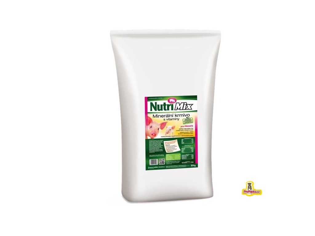 Nutrimix pro prasata je určen na doplnění minerálních látek a vitaminů do krmných dávek pro odstavená selata a vykrmovaná prasata v drobnochovech. Podporuje dosažení vysokých přírůstků, využití přijatých živin a zajišťuje odpovídající zdravotní stav. Přidává se do krmné dávky, která je založena na obilných šrotech nebo jiných neplnohodnotných krmivech, popř. kuchyňských zbytcích atd.