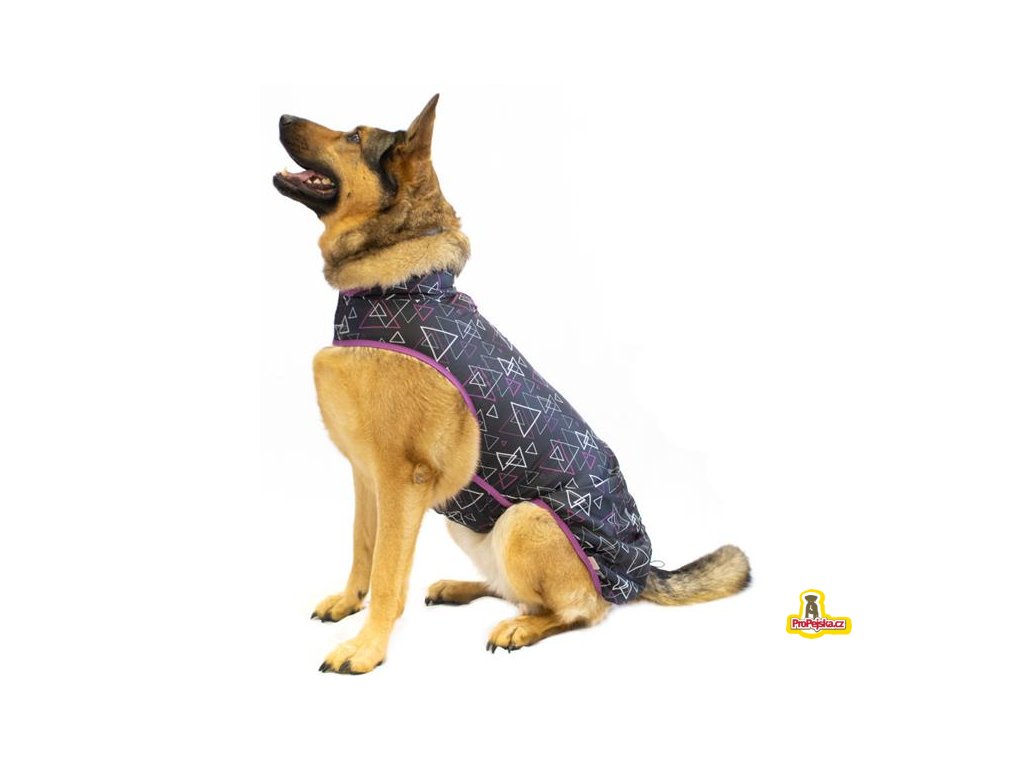 Pláštěnka Trekky ochrání vašeho psa před deštěm, větrem a jiným nepříznivým počasím. Svrchní vrstva z bundové tkaniny s voděodolným zátěrem je podšitá měkkou svetrovinou. Obleček je tvarovaný anatomicky tak, aby psa neomezoval v pohybu, a přitom chránil všechny důležité partie jeho těla. Je opatřený elastickým lemem, který brání úniku tepla po jeho celém obvodu. Gumičky v zadní části zaručí, aby pláštěnka přiléhala k zadním končetinám. V oblasti šíje se nachází otvor pro připnutí vodítka k obojku a praktické poutko pro zavěšení oblečku například při jeho sušení. Díky systému suchých zipů lze pláštěnku snadno a rychle navléknout a díky oboustrannému zapínání pod krkem lze optimálně nastavit obvod krční části. Na obou bocích jsou pak našité zipy, kterými lze zapnout spodek oblečku zleva i zprava. Pro bezpečnější venčení za zhoršené viditelnosti je pláštěnka opatřena reflexními prvky.