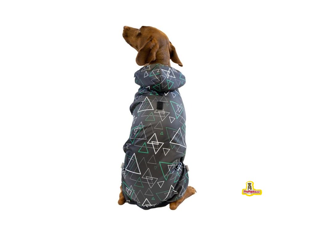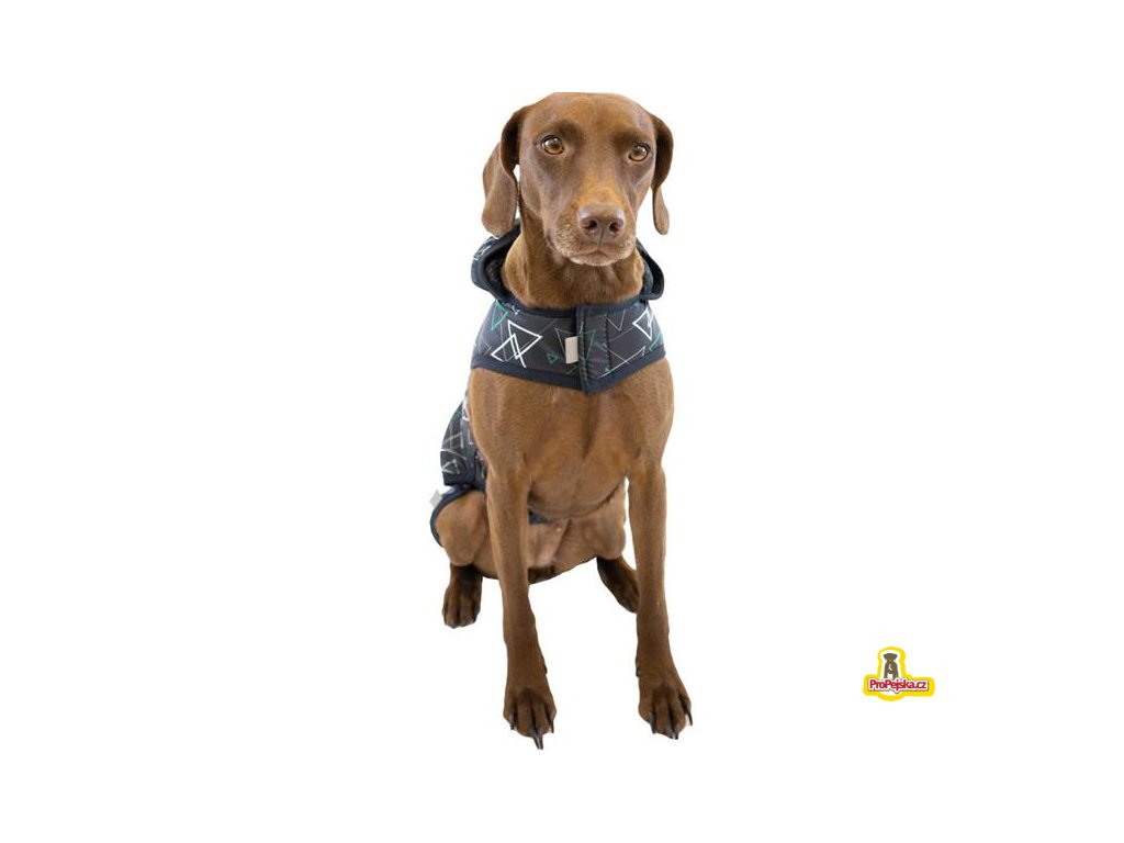 Pláštěnka Trekky ochrání vašeho psa před deštěm, větrem a jiným nepříznivým počasím. Svrchní vrstva z bundové tkaniny s voděodolným zátěrem je podšitá měkkou svetrovinou. Obleček je tvarovaný anatomicky tak, aby psa neomezoval v pohybu, a přitom chránil všechny důležité partie jeho těla. Je opatřený elastickým lemem, který brání úniku tepla po jeho celém obvodu. Gumičky v zadní části zaručí, aby pláštěnka přiléhala k zadním končetinám. V oblasti šíje se nachází otvor pro připnutí vodítka k obojku a praktické poutko pro zavěšení oblečku například při jeho sušení. Díky systému suchých zipů lze pláštěnku snadno a rychle navléknout a díky oboustrannému zapínání pod krkem lze optimálně nastavit obvod krční části. Na obou bocích jsou pak našité zipy, kterými lze zapnout spodek oblečku zleva i zprava. Pro bezpečnější venčení za zhoršené viditelnosti je pláštěnka opatřena reflexními prvky.