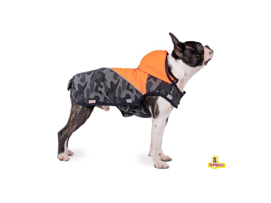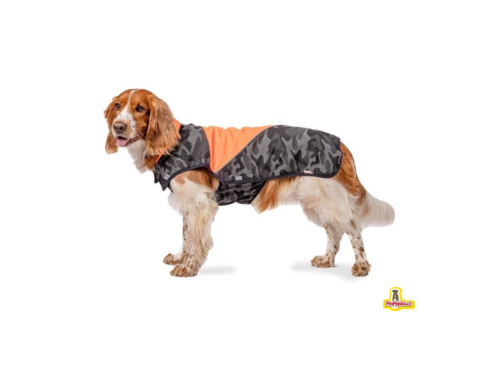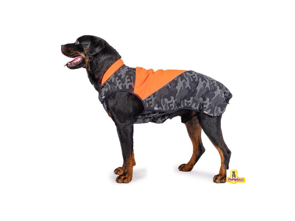 Funkční softshellová vesta Splendor chrání psa před chladem, větrem i deštěm. Vysoce kvalitní třívrstvý softshell má nejen vynikající termo- a hydroizolační vlastnosti, ale také vysokou prodyšnost a elastičnost. Střih je navržen anatomicky tak, aby psa neomezoval v pohybu, a přitom chránil všechny důležité partie jeho těla. Okraje vesty jsou obšité pružným lemem, takže obleček výborně drží na těle psa, nepodfukuje a neuniká zpod něj teplo. Gumičky na zadní nohy a ocásek zajišťují, aby vesta neodstávala v zadní části. Za krkem je otvor pro připnutí vodítka a všité poutko pro zavěšení (např. při sušení). Oblékání je snadné a rychlé díky systému suchých zipů: oboustranné zapínání pod krkem umožňuje optimální nastavení obvodu krční části a zipy na bocích umožňují zapnutí břišní části zleva i zprava. Pro bezpečnější venčení za zhoršené viditelnosti je vesta opatřena reflexními prvky.