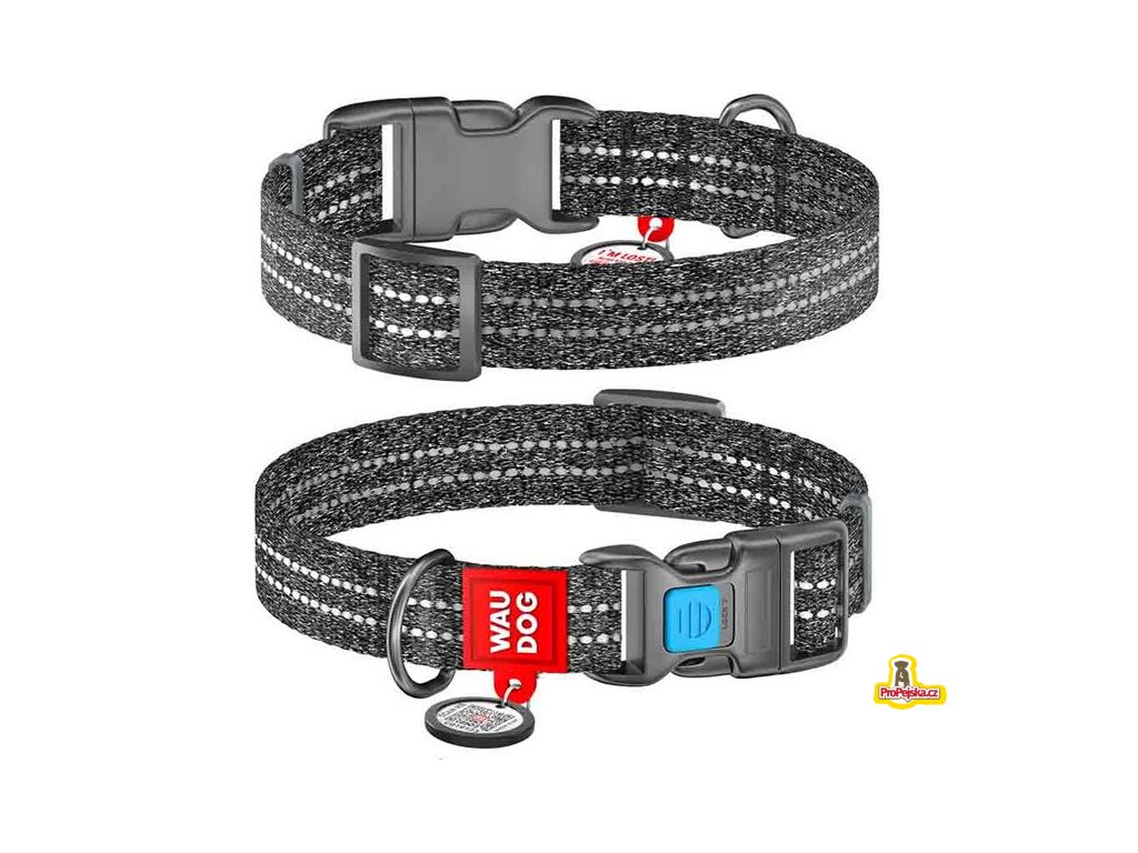 Obojek WAUDOG Re-cotton kombinuje klasický styl a kvalitní provedení s využitím nových technologií. V zájmu udržitelnosti je vyroben z recyklovaných surovin. Pásek je z recyklované bavlny, pevného, ale lehkého, prodyšného a na dotek velmi příjemného materiálu s hypoalergenním složením. Obojek je díky tomu vhodný i pro štěňata a psy toy a mini plemen. Snadno se udržuje – lze jej prát – a po namočení velmi rychle schne. Pro větší bezpečnost má reflexní prošití a Smart ID známku s unikátním QR kódem.