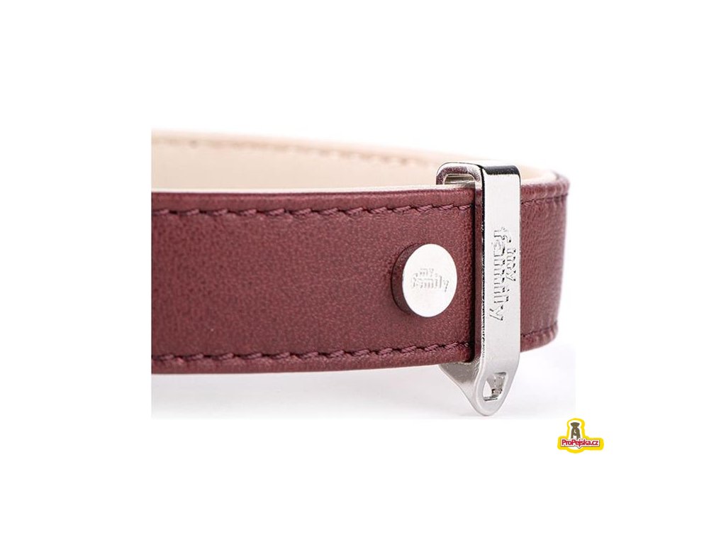 Obojek pro psy z kolekce Hermitage z pravé italské vínové/béžové kůže s bílou bronzovou povrchovou úpravou. Obojek je vyroben z kvalitního materiálu a má očko na známku značky MyFamily.