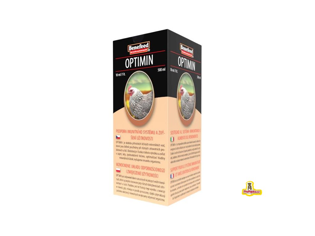 OPTIMIN obsahuje specifický komplex minerálních a dalších látek zohledňující individuální potřeby kategorie zvířat, pro kterou je určen. Minerální látky jsou ve formě, která zajistí maximální účinnost každého prvku tak, aby došlo k vyrovnání hladiny jednotlivých prvků v organismu. Optimální hladina všech prvků v organismu je mimo jiné zcela nezbytným předpokladem pro vysokou obranyschopnost a odolnost organismu např. proti infekčním a virovým chorobám. U užitkových zvířat jsou pak také eliminovány negativní důsledky poklesu užitkovosti z důvodu snížené hladiny makro a mikro prvků v organismu.
