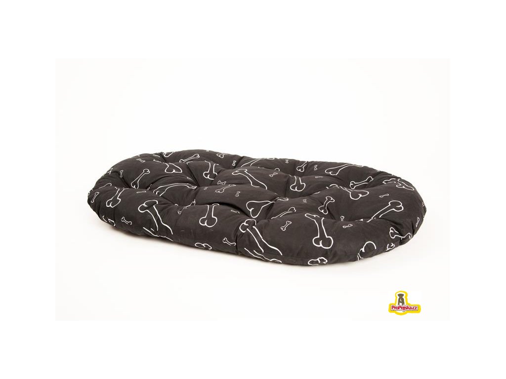 Pohodlný a kvalitní polštář vyrobený z bavlněné látky potištěné kostmi a kostičkami, vyplněný dutým vláknem. Polštář je v několika bodech prošitý, aby nedošlo k nerovnoměrnému rozmístění výplně.