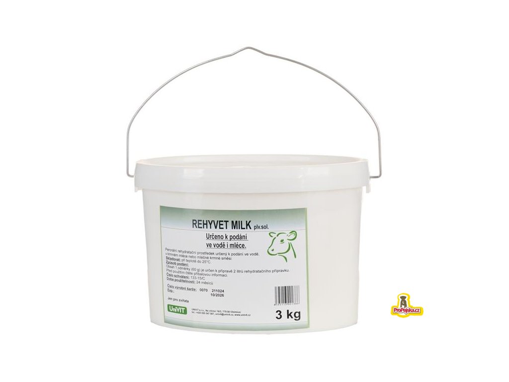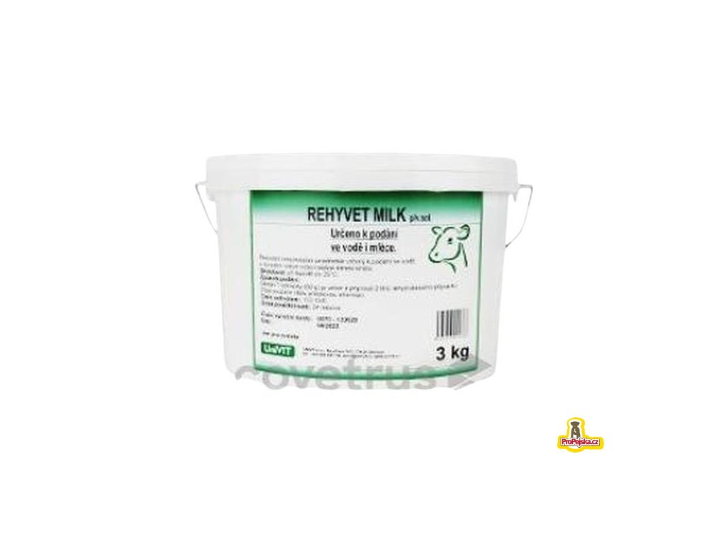 REHYVET MILK řeší problémy dehydratace a acidóz vzniklých při průjmových onemocněních u telat. Díky použitému citronanu lze kombinovat použití přípravku s napájením mlékem. Tím se do těla telete dopraví dostatek energie a bílkovin, které je částečně schopno vstřebat a trávit i poškozené střevo. Po aplikaci připraveného roztoku dochází k rychlému vyrovnání ztráty vody, sodíkových a draselných iontů a energie.