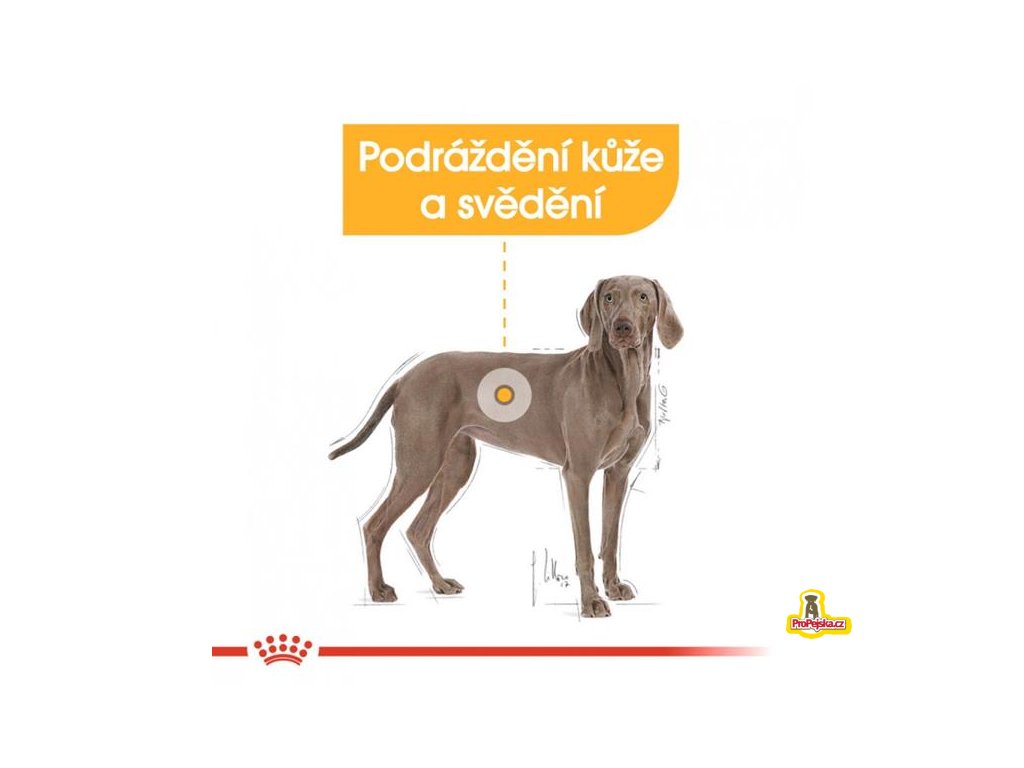 Kompletní krmivo pro dospělé a stárnoucí psy malých plemen (hmotnost 26 až 44 kg) - pro psy náchylné k podráždění a svědění kůže - nad 10 měsíců.
