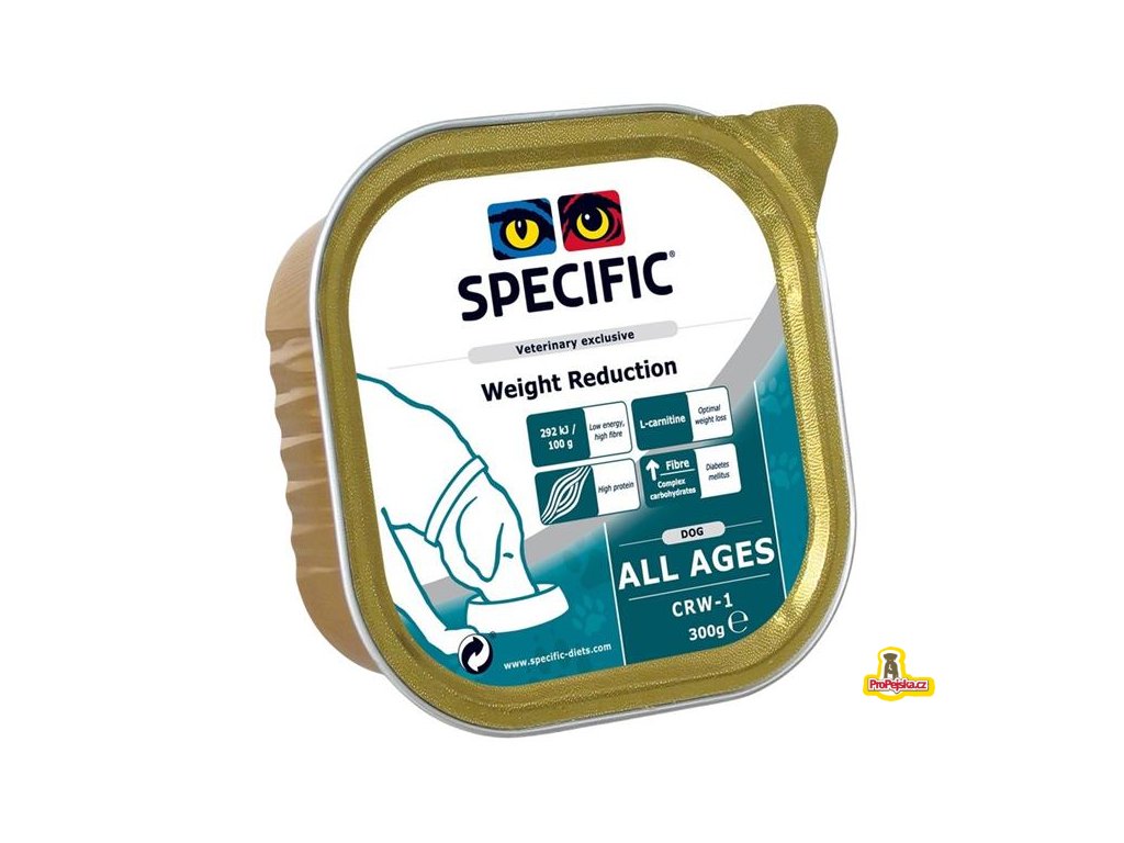 Jedna 300g konzerva SPECIFIC™ CRW-1 Weight Reduction nahradí 76 g SPECIFIC™ CRD-1 Weight Reduction nebo 68 g SPECIFIC™ CRD-2 Weight Reduction.