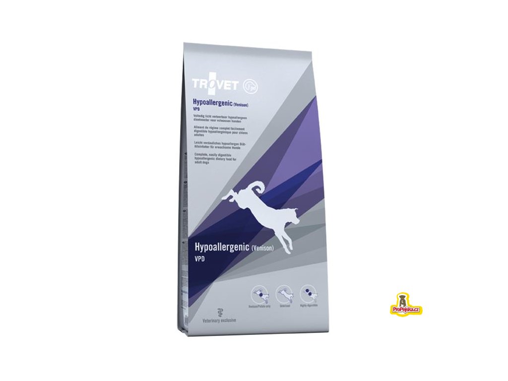 Firma TROVET vyrábí celou řadu hypoalergenních diet. Každá z nich je specifická tím, že obsahuje pouze jeden zdroj bílkoviny a jeden zdroj sacharidů. Tato dieta obsahuje zvěřinu jako zdroj bílkoviny a brambory jako zdroj sacharidů.