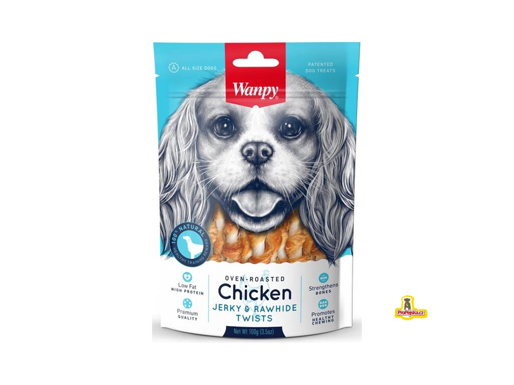 Wanpy Dog Chicken Jerky & Rawhide Twists 100 g