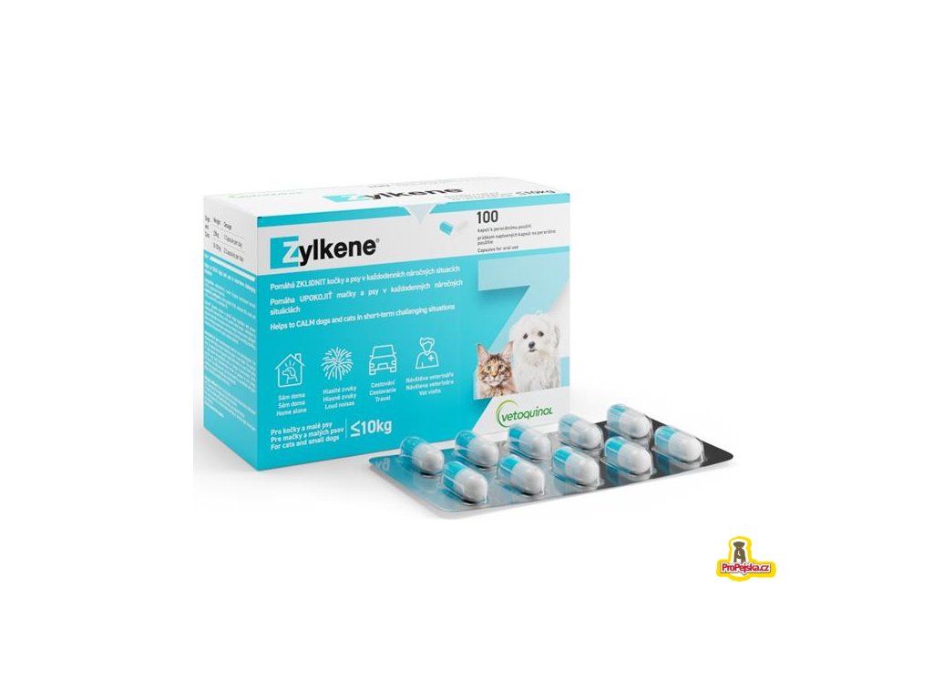Kapsle Zylkene® obsahují přírodní složku s prokázaným zklidňujícím účinkem, která se získává z mléčné bílkoviny zvané kasein. Alfa-kasozepin, přírodní bioaktivní peptid odvozený z mléka, navozuje uvolnění a relaxaci novorozeňat při sání mateřského mléka. Zylkene® je doplňkové krmivo, které je doporučováno pro použití u psů a koček, kteří reagují příliš bojácně. Zlepšuje přizpůsobivost zvířat a podporuje obnovu jejich přirozeného chování. S podáváním Zylkene® začněte ještě před očekávanou událostí a pokračujte až do obnovení psychické rovnováhy zvířete.