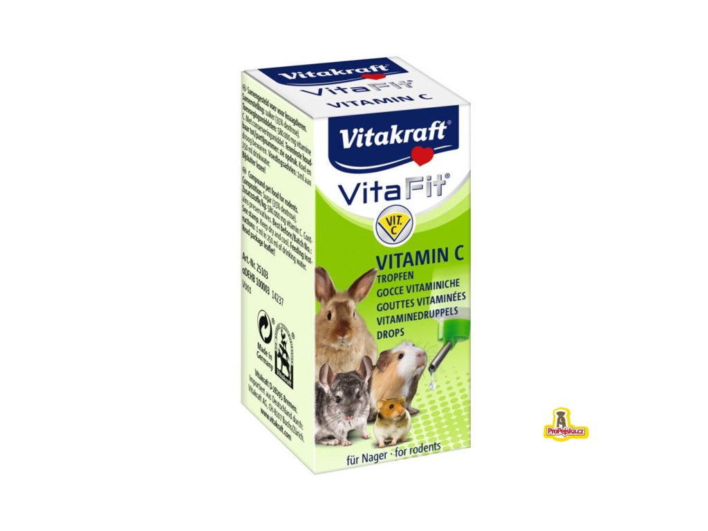 480 mcg / kg, vitamín C 4,8 mg / kg, kyselina nikotinová 4,8 mg / kg, D-pantothenát vápenatý 1430 mg / kg. Kapky s vitaminem C pro hlodavce.