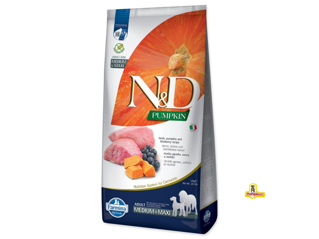 N&D Pumpkin Dog Adult Medium & Maxi Grain Free Lamb & Blueberry 12 kg