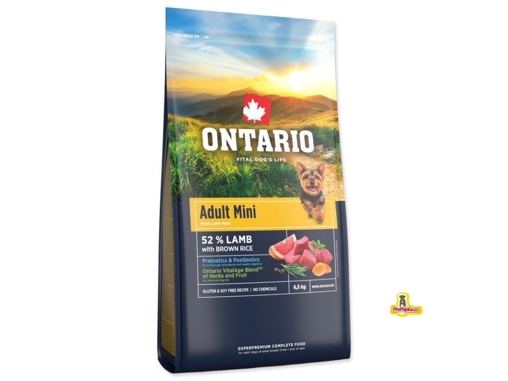 Ontario Adult Mini Lamb & Brown Rice je plnohodnotné superprémiové krmivo, které splňuje nutriční požadavky dospělých psů malých plemen.