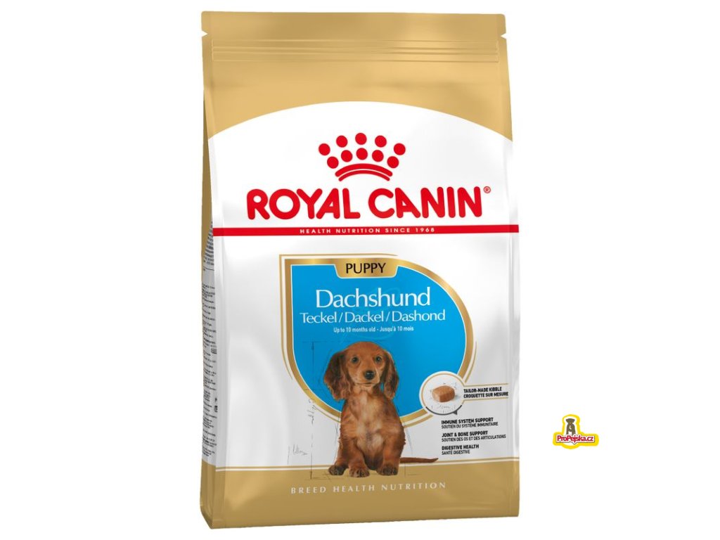 Speciální granule: tyto granule speciálně navržené pro štěňata jezevčíků obsahují chelát vápníku a pomáhají snižovat tvorbu zubního kamene. Příslib kvality Royal Canin