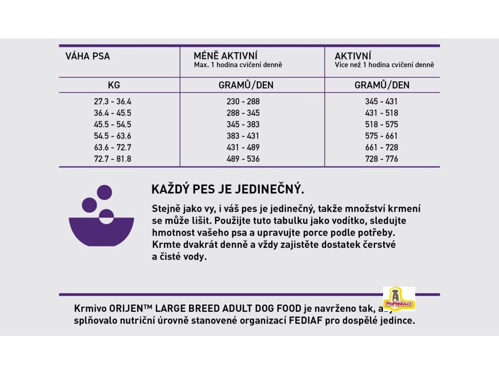 podpora metabolismu: vytvořeno s obsahem tuku o 3 % menším, než u receptury Orijen Original - kvůli podpoře pomalejšího růstu velkých plemen