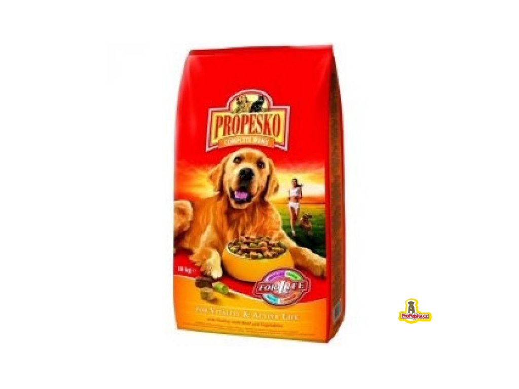 Toto kompletní krmivo s chutným drůbežím, hovězím a zeleninou je obohaceno o komplex FOR LIFE s taurinem, omega mastnými kyselinami, inulinem a L-carnitinem. Díky optimálnímu složení a pečlivě vybraným surovinám dodává Propesko Vitality and Active Life Vašemu psovi potřebnou energii na každý den.