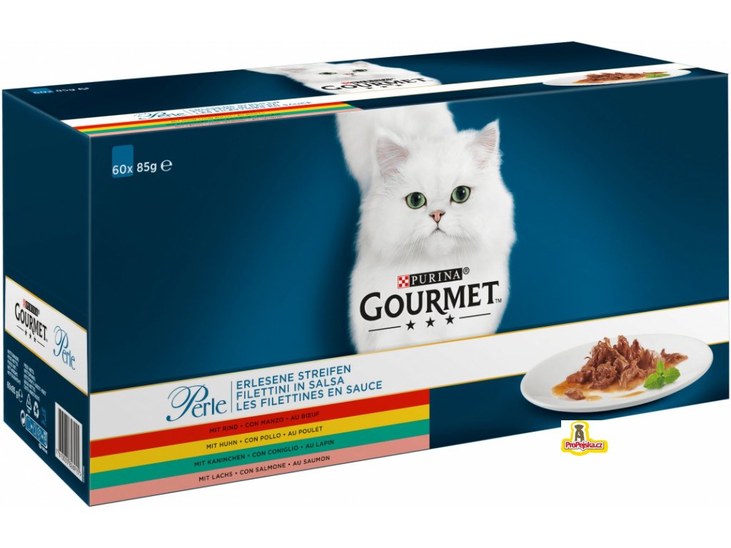 Gourmet Perle hovězí kuře králík losos v omáčce 60 x 85 g