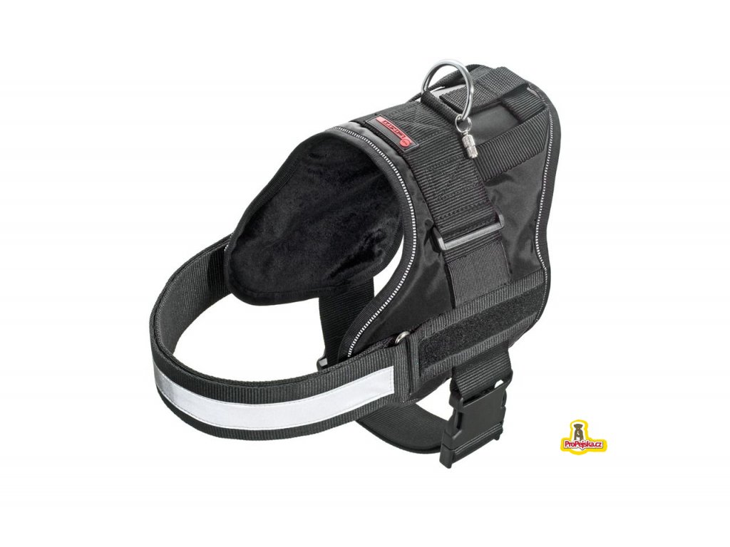 Postroj XTREME HARNESS v černé barvě. Velikost 55-68 cm. Postroj je vyrobený z originálního teflonu. Je extra silně prošitý, ale díky odlehčenému polstrování správně rozloží tlak.