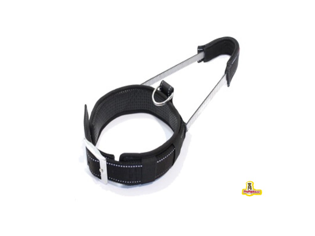 Odolný obojek pro psy s integrovaným krátkým vodítkem, pro rychlou kontrolu ve složitých situacích, síťované polstrování uvnitř, s praktickým D-kroužkem, elastické vodítko s rukojetí, vyrobeno z nylonu.