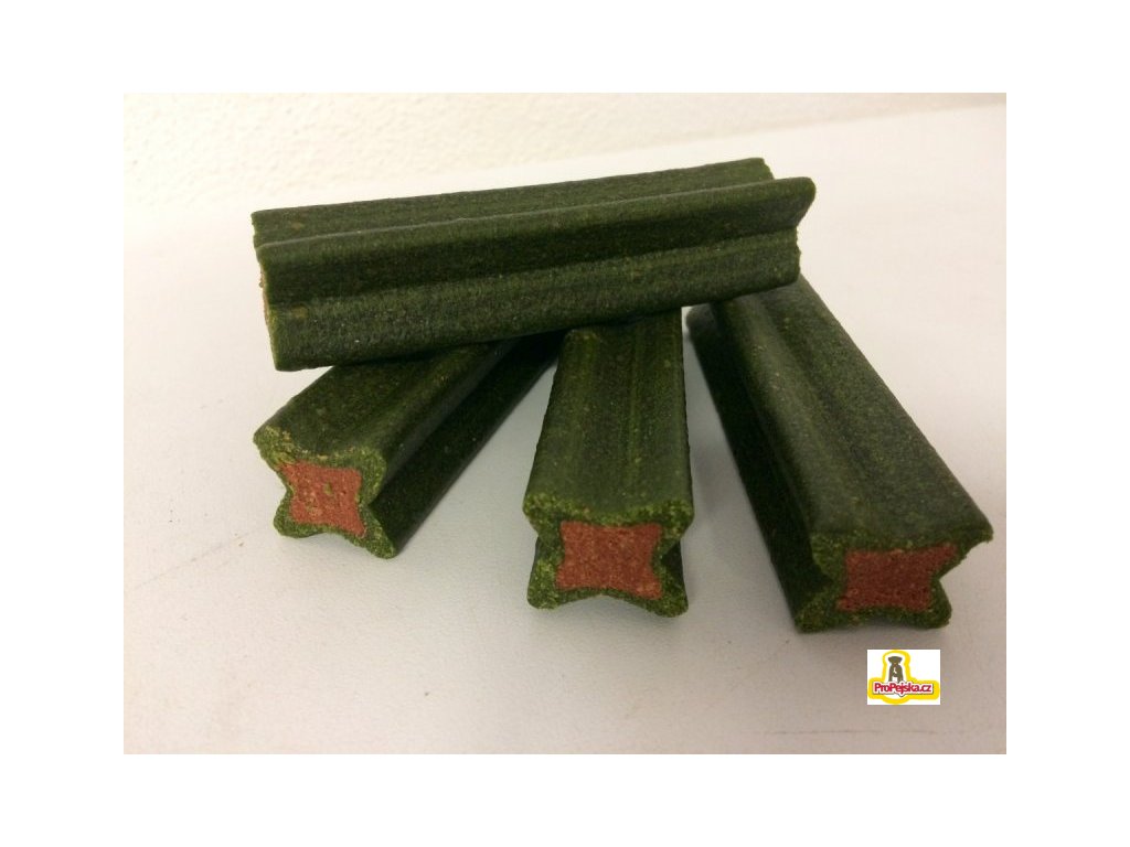 Tyčinka, která díky svému tvaru pomáhá při kousání odstraňovat zubní plak a kámen, eukalipt zanechává svěží dech. Může sloužit také jako odměna.
