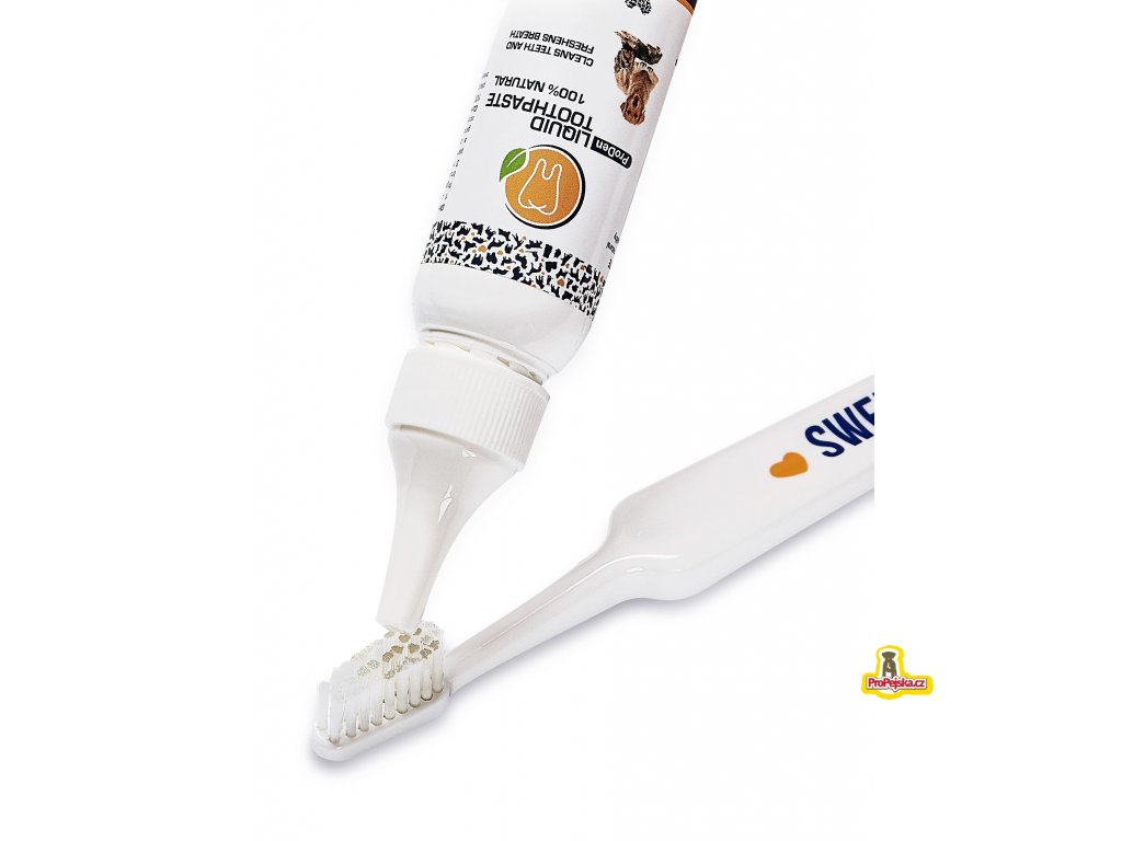 ProDen Tekutá zubní pasta je "dárek" z přírody Je to přírodní zubní pasta a osvěžovač dechu vyrobená ze 100% přírodních a éterických olejů. Je speciálně vytvořena s přísadami, které pomáhají vyčistit zuby vašeho psa, udržovat čerstvý dech, eliminovat špatné bakterie a chránit zuby a dásně.